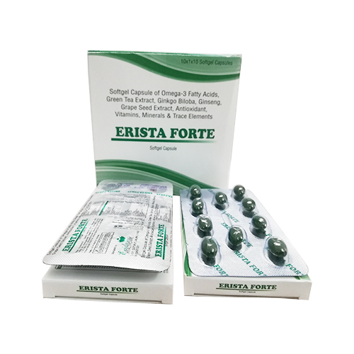 Omega-3 Fatty Acids, Vitamins, Minerals & Trace Elements Soft Gel Capsules – Available with the brand name Erista Forte, this soft gel capsule is a complete synthesis of various effective components. It comes with the goodness of OMEGA-3 Fatty Acids, Green Tea Extract, Ginkgo Biloba, Ginseng, Grape Seed Extract, Antioxidants, Vitamins, Minerals, and Trace Elements. The blend of these ingredients in this capsule is known to be helpful in weight loss, hypertension, and also in boosting the immune system.