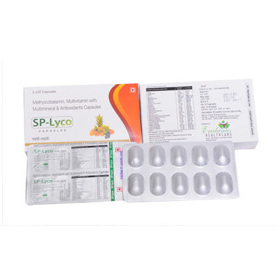 L-Methylfolate, Vitamin K2-7, Methylcobalamin, Calcium Citrate Malate, Calcitriol, Omega-3 Fatty Acids, Pyridoxal-5 Phosphate & Lycopene Soft Gel Capsules – Offered with the brand name SP-LYCO, these soft gel capsules are a robust amalgamation of various effective components; L-Methylfolate, Vitamin K2-7, Methylcobalamin Calcium Citrate Malate, Calcitriol, Omega-3 Fatty Acid, Pyridoxal-5 Phosphate, and Lycopene. The complete synthesis of these nutrients is useful to treat vitamin and calcium deficiency.