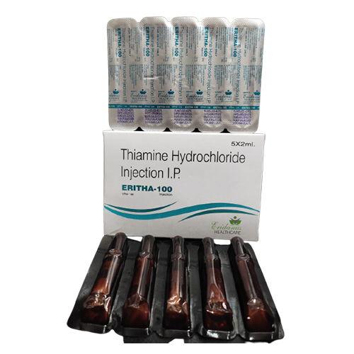 THIAMINE HYDROCHLORIDE INJECTION – With the goodness of Thiamine Hydrochloride, this injection helps the patients in fulfilling their vitamin B1 deficiency. It is recommended for those patients who are unable to meet their daily Vitamin B1 requirements. Further, Thiamine Hydrochloride Injection I.P. is recommended to treat issues like beriberi which is a serious condition that happens due to prolonged deficiency of Vitamin B1. You can get your hands on this amazing product by the brand name ERITHA-100, delivered by the Best Thiamine Hydrochloride Injection Manufacturer, Eridanus Healthcare.